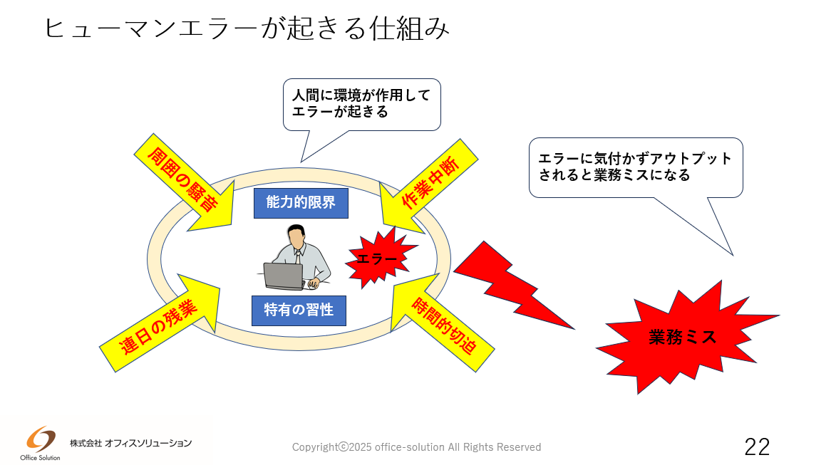 「事務ミス防止」は精神論や断片的な仕事術では達成できません。それではどうるすのか?についてシリーズでお伝えします。